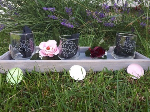 Plateau constitue de 3 photophore grave, vendu complet avec les bougies